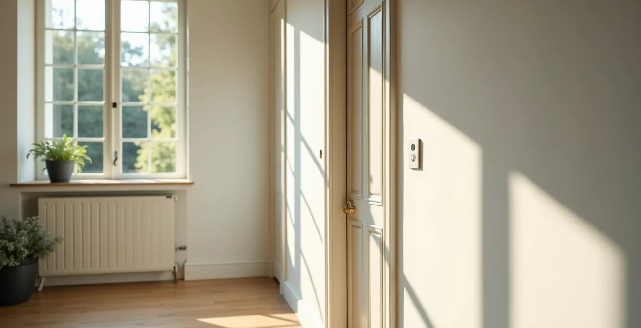 Pour un pavillon, la logique s’adapte. La porte d’entrée reste la priorité numéro un. Les deux autres détecteurs seront placés sur les points de fragilité les plus évidents du rez-de-chaussée, généralement les grandes baies vitrées du salon ou la porte-fenêtre de la cuisine donnant sur le jardin. Placer un détecteur de vibration sur une grande surface vitrée peut être une alternative intelligente, car il se déclenchera à la tentative de bris de glace, avant même l’ouverture. Cette approche force l’intrus à s’attaquer à des accès plus exposés, plus bruyants à forcer ou plus difficiles d’accès, augmentant ainsi considérablement le risque pour lui.